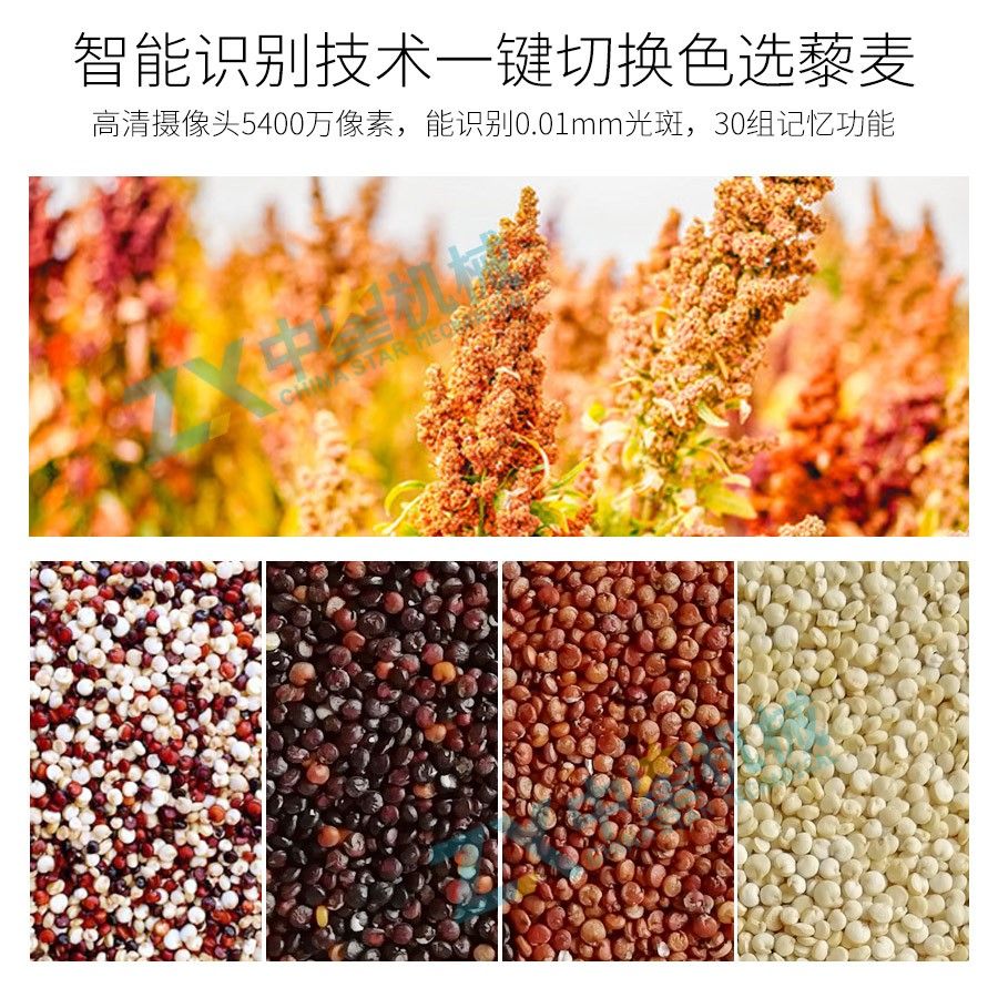 1、藜麥色選機(jī)高清攝像頭5400萬(wàn)像素,能識(shí)別0.01mm光斑,30組記憶功能,一鍵切換色選藜麥,智能平板控制,操作簡(jiǎn)單。